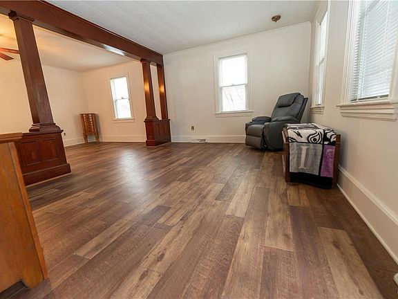 An attractive backyard with plenty storage with 3 sheds.  Enjoy an eat-in kitchen, large dining area and living room. Includes refrigerator, 2 washer and dryers. Street Parking and Ally parking in rear of property.