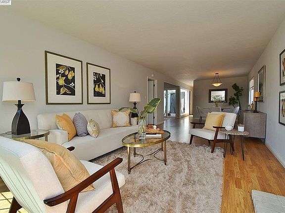 Welcome to this immaculate and delightful single level Duet Home in the desirable central South Shore area of Alameda! Youâll love coming home to enjoy the comforts of this stylized home with contemporary laminate flooring, new bedroom carpeting and fresh interior paint. The bright updated kitchen features bistro style dining, recessed lighting, granite counters and gas cooking. The elegantly remodeled bathrooms are striking with upscale materials and detailed finishes. Dual pane windows. A lovely natural setting, the atrium has access from the den and the second bedroom. The sunny private patio and garden is perfect for relaxing at the end of a busy day. Rear yard has some new fencing, too. Close to restaurants, shopping, public transportation and the shoreline enhances the appeal of this home! HOA $25. a year!