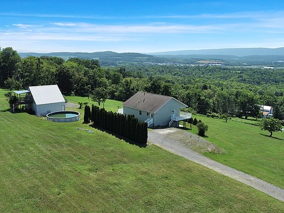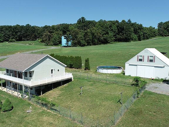 Breathtaking views and limitless potential await at this 4 bedroom, 2 bath home with over 2000 sq ft on 6.65 acres in Fermanagh township. A unique design for an unparalleled location, the main floor offers all the essentials. Hardwood runs through the Kitchen, Dining and Living room, with natural light pouring in from the southern exposure. Downstairs you will find 4 bedrooms, full bath with laundry, and a den with a cozy pellet stove. Ductless mini split system for heat/cooling on each level. Wrap around porch. Detached 33 x 24 metal garage with a separately metered, small apartment upstairs. Partially fenced yard. Above ground pool and addt'l shed stay. Producing Cherry trees dot the lower yard. Public water, private septic system.