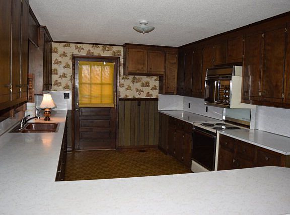 This is a lot of house for the money. Country setting out in the country where the cows roam. Well water with filtration system. Priced less than $50.00 per square foot. Brick Fireplace in family room