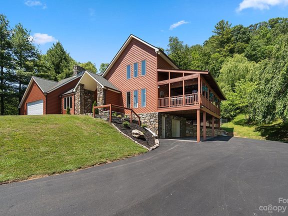 The open house has been canceled. Discover this unique retreat in Marshall, NC—a picturesque hilltop home offering breathtaking long-range views that stretch as far as the eye can see. With a fusion of stone and wood exterior, this property blends rustic charm with modern elegance. Step inside to find an inviting space with rich hardwood floors and a floor-to-ceiling stone fireplace. The kitchen boasts granite countertops with room to entertain or hone your culinary skills. Ascend to the second floor and find the primary bedroom's private balcony. Unwind on the covered porch, or indulge in the soothing hot tub.