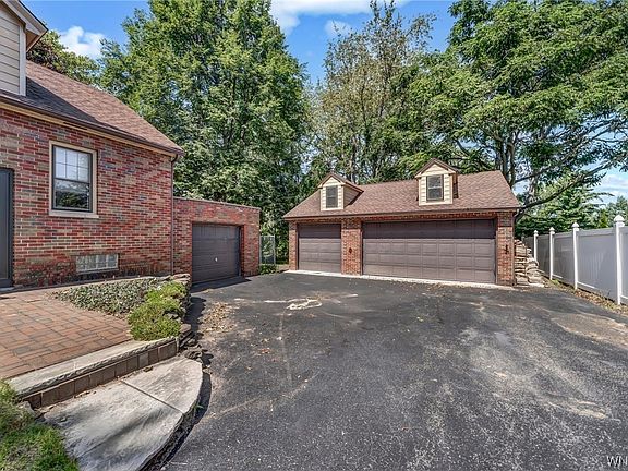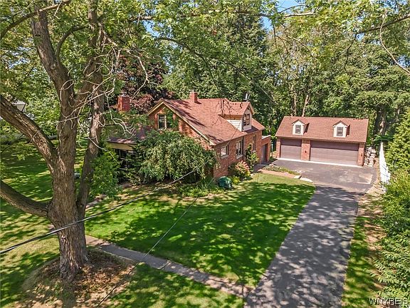 Lovely Storybook Brick Cape Cod on 1.1 acres!! Park like back yard and a rear wooded area along with a smaller partially fenced in space. Tastefully landscaped, blacktop driveway with parking area, attached 1 car garage with basement access, detached 2nd Garage, 3 bay, heated, workshop, 220 service, additional rear overhead door to back yard with a beautiful view! ~ Updated kitchen, quartz counters, oak cabinets, includes appliances. Leaded glass doors lead to a formal dining room. Stylish arches, natural woodwork and leaded glass are featured throughout the home. The spacious living room w/ fireplace leads you to the private enclosed porch. Two 1st floor bedrooms, 2nd floor additional bedroom with adjacent bonus room! Hardwood floors! ~ Partially finished basement, glass block windows, half bath. ~ 15 minutes to downtown Rochester, appx 1 mile to 490. Convenience and tranquility all in one! Open House Sunday 8/27/23 1-3pm.