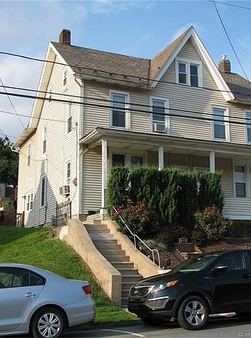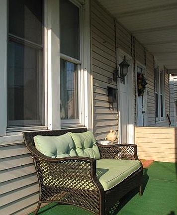 Spacious twin home offers four, possibly five bedrooms, large open eat in kitchen and dining room (currently utilized as a living room), economical gas heat and hot water, newer replacement windows and bathroom facilities on three levels. Outside you will find a covered front porch and private patio out back, on and off street parking, and a fenced in back yard. Very reasonable taxes too!