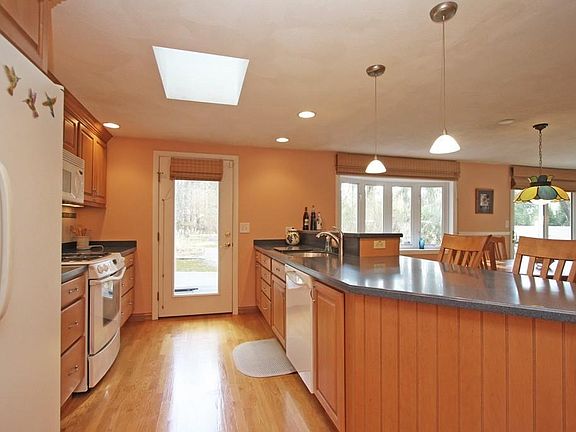 Looks can be deceiving! You'll be pleasantly surprised by just how large this house is with 8 rms, 3 full baths & 4 bedrms. Enjoy entertaining outdoors on your 40' deck overlooking the perennial gardens and yard. You'll love working in the kitchen with beautiful skylight, Corian counter tops, prep area, island & gas range. The kitchen has an open floor plan so you are part of the activity. Relax in your cozy living rm with wood floor & fireplace or the family rm off the kitchen. There are Hunter/Douglas (bamboo, faux wood, silhouette, honeycomb) blinds in most rooms. The master bedrm is on the first floor & includes a large dressing rm, updated bath with dual vanity a & tiled shower. 2nd bedrm is on the 1st fl with 2 add'l bedrms on the 2nd floor with a full bath. There is a heated out building that had been used as an office. Imagine it as an exercise space? All windows have been replaced with vinyl. 2 Mitsubishi split a/c units. Just roll your bike onto the bike path and your off!