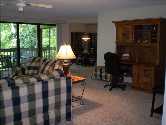 This delightful 2BR, 2.5 Bath condo in the Marina Villas community of Keowee Key is being offered FURNISHED as it exists. The unit is nicely designed for easy living with two separate bedroom suites on opposite ends of the condo, a large living area with a wood burning fireplace, hearth and convenient wet bar (with stools) and plenty of room for a desk as well. The attractive dining area is easily accessible from the living room or kitchen. There is also a small open deck with sliding doors off the living and dining areas. The sunroom, with the cooling ceiling fan, can be accessed from either the Master Bedroom or living area and offers a seasonal water view of Lake Keowee. The kitchen has breakfast bar seating and some under-the-counter lighting. The spacious Master Bedroom is furnished, has a double closet AND a walk-in closet in the Master Bath area where you also have a double vanity, jetted tub and a separate walk-in shower. The half bath for your dinner guests is located at the end of the hall near the second bedroom and next to the laundry area which houses a washer and dryer and shelving overhead. We can't forget to mention the more-than-ample storage area with an outside entrance underneath the condo and the convenient workbench inside. This Marina Villa community is often considered to be one of the nicest areas within Keowee Key with its larger square footage condos, a beach area for swimming, private marina and new dock, a picnic area with grills, two artificial grass tennis courts AND a boat launching ramp with deep water, not to mention the breathtaking views. What more could a boater, swimmer or tennis player ask for in his/her own back yard?