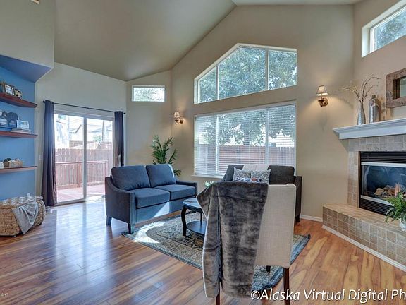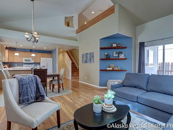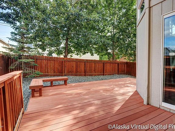 Light, bright & well cared for home in quiet south Anch pocket neighborhood featuring open plan w/vaulted ceilings & quality laminate floors. Also has main floor master w/walk-in closet & private bath, south facing fenced back yard w/custom trex deck & built in benches and upper level trex balcony w/mountain views. Close to Johns Park & Ocean view elem school. Appliances stay w/full price offer.
