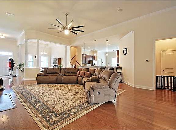 READY NOW! Close quickly on this is a beautiful, hard to find, large single story Nantucket design with all the features you've been looking for. They don't build this plan any longer. The home has up to 5 bedrooms which include 2 true master suites, each with large master baths. All bedrooms are separated giving a feeling of privacy. One of these rooms is presently used as a gym and another is the bonus room upstairs. This desired design is nice and open. As you enter, you'll find beautiful hardwood floors that flow through the downstairs except for in the bedrooms, baths and sunroom. The lighting and fans are high quality. Enjoy surround sound in the spacious living room where wiring is already in place for you to hang your tv above the gas fireplace. The large dining room also has nice lighting and a tray ceiling. This home has a gourmet eat in kitchen with quality stainless appliances including a gas range. There's plenty of granite counters and lots of extended 42" cabinets with pull out drawers in lower cabinets. There's even a big center island and pendant lights in addition to the canned lighting. The master suite is large, has a tray ceiling, surround sound, his and hers closets and a luxury bath. This great bathroom has a large round soaking tub, big shower and separate vanities. The 2nd master bedroom is almost as nice as the first. There's a bonus room upstairs that could be a bedroom, get away for kids or maybe an office or craft room. There's even a sunroom with a tiled floor that leads to a privacy fenced backyard. The home backs to a wooded buffer providing extra privacy. There are many upgrades including trimmed out windows and doors, window blinds throughout, Lots of crown molding throughout the house, an alarm system, irrigation system, storm doors front and rear, a matching storage shed in the backyard and much more. There's a gate on the back fence that leads to a grassy field that overlooks the pond just beyond. These are nice little extra perks. Cane Bay is a very popular community with popular schools and nice amenities including a neighborhood pool and pavilion. Why build when you can have it now? Don't hesitate to see this home.