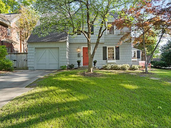 This architecturally & historically significant Tulsa Cape Cod is a dreamy blend of old & new. Professionally renovated kitchen features a marble front Galley Sink. Known as "The Piano Studio House" it's grand living room has 11 foot ceilings & once held piano concerts by the original owner. Rare downstairs master suite includes an ensuite utility room. It's perfectly located on the most charming, wooded lot on Maple Ridge. Minutes from the Gathering Place & downtown but feels like a private sanctuary!