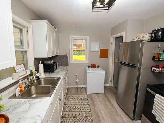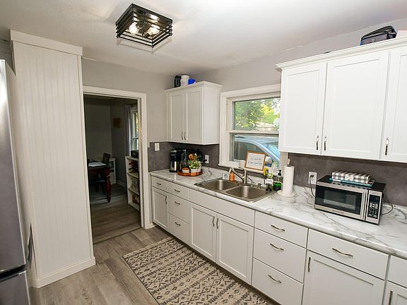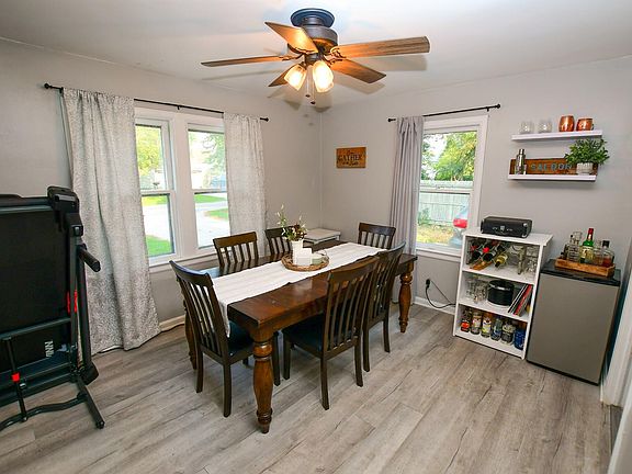 This 2 bedroom, 1 bath home is definitely a GEM in a Friendly City! Home has many updates such a new kitchen, stainless steel appliances and laminate flooring throughout main level. Greet your guests at the front entry that has been updated recently with shiplap, hooks and bench to catch all the coats and boots this winter. Sellers had the electrical panel upgraded in 2022. Full bath is located upstairs and was gutted and totally redone within the last year with subway tile in the shower, new vanity and countertop and a custom made barn wood sliding door. Original wood floors throughout the upstairs. This is such a cute home and move in ready!