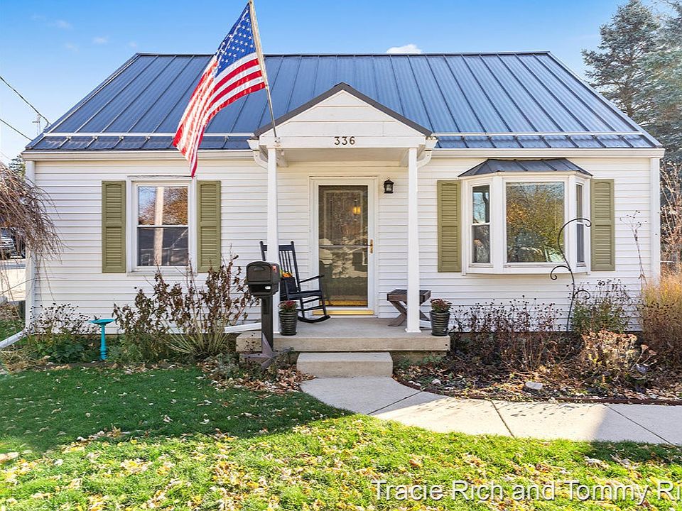 Amazing location and wonderful curb appeal make this a home you should see! Located in downtown Rockford and close to the walking trails, restaurants and shops. This 4 bedroom cape cod style homes offers a good size kitchen with eating area, 2 bedrooms and a full bath on the main floor and living room with hardwood floors. Upstairs you will find 2 huge bedrooms and plenty of storage. The lower level could be finished. With all the updates, you can move right in. News windows, roof, 2 stall garage, front porch and siding etc. Its not often you can find a home in this price range that is ready to move in.