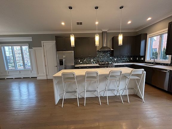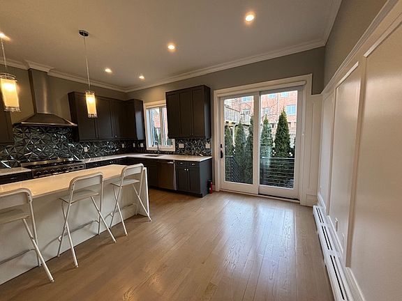 A clean and well-maintained full duplex for rent in a quiet residential neighborhood. The home features hardwood floors throughout, offering a bright and pristine living space. The living room boasts 10-foot ceilings and a fireplace, while the open kitchen, equipped with a spacious and functional island, seamlessly connects to a beautiful backyard. Ample storage is provided by custom-made cabinets, and the second floor includes three generously sized bedrooms and two bathrooms, along with a convenient laundry room. The ground floor has a private entrance, a studio, and a full bathroom. Additional features include a two-car garage and ample parking space. The property is within walking distance of the New York bus. The move-in costs include a security deposit of one and a half months' rent, the first month's rent, and a one-month commission fee.