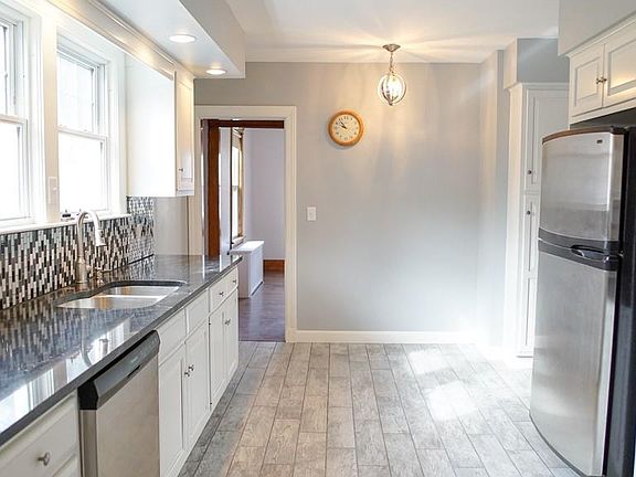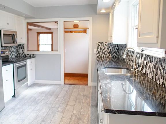 Tastefully renovated 7 room, 3 bedroom, 1.5 bath Colonial with detached 2 car garage. Brand new kitchen with granite countertops, cabinets and tile floors. Stone fireplace in family room with vintage wide pine floors, open living room and dining room with rich, new hardwoods. New bathroom on first floor and half bath added on second floor. Unfinished room in basement with 2nd fireplace. Brick patio, fruit trees and berry bushes on 1/2 acre lot.