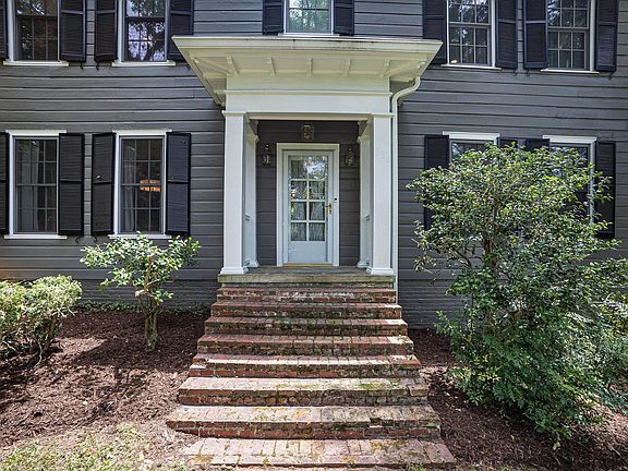 Known as the Wilkins P Horton House this home is listed on the National Registry of Historic Places & has many updates. The home boasts charming architecture, refined curb appeal & is located only moments from downtown Pittsboro & Chatham Park. Mature trees & a generously sized yard frame the home. Once inside, high ceilings & pine flooring are found throughout much of the home. The spacious living room offers a fireplace, built-in shelving & custom cabinetry. A room with full bath adjoins the living room. This space could be used as a bedroom or a study. To the left of the foyer is the dining room. The chef’s kitchen includes ample custom cabinetry, generous counterspace, large windows, room for a breakfast table & space for a desk. On the 2nd level are 3 bedrooms, 2 with ensuite baths. The large primary bedroom suite includes an ensuite bath with separate tub & shower, a spacious walk-in closet & access to the roof top deck. Additional features include many updated windows, central vacuum system, a detached 2 car garage with storage for motorcycles, a storage building, a woodworking shop with mini-split system.