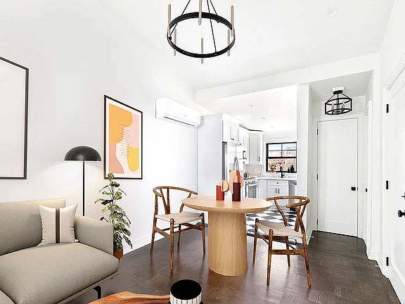 Apologies - no pets. Available for a March 1 move-in. First showings will be Monday, 2/24. Welcome to 336 Humboldt Street; a scrupulously re-imagined, boutique multi-family comprised of three (3) meticulously renovated, well-appointed residences. Resting on the corner of Humboldt Street and Ainslie Street, the building boasts a gorgeous white brick facade, complimented by matte-black, arched windows and a matte-black cornice harmonizing Brooklyn charm and modern elements for tasteful composition. Each residence comes with custom built-in/walk-in closets and an in-unit W/D. Residence #3 is a well-proportioned one-bedroom (1BR), one-bathroom (1BA) generously designed with thoughtful intention. The original parquet flooring was completely redone and brought to life with a mocha finish, bringing a sense of contrast and warmth throughout. A unique collaboration of tasteful fixtures paired with a seamless blend of textures and styles create a picturesque redefinition of modern living. The kitchen, outfitted with white and black checkered tile with light-grey veining incorporates another layer of depth, paired with lightly veined white & grey subway tile and countertops. White shaker cabinets outline this highly functional space and are complimented by matte black cabinet pulls. The kitchen comes equipped with stainless steel appliances comprised of both GE & Frigidaire including 5-burner gas stove, double-door refrigerator with an ice maker and water source, and a dishwasher. The bedroom flaunts high, sloped ceilings and two large arched windows. Further progression into the bedroom is an en-suite walk in, custom built closet outfitted perfectly for a large wardrobe. A side-by-side Washer & Dryer is provided at the back of the closet with extra cabinetry for storage above. The bathroom continues the cohesion of contrasting black and white design and is outfitted with a deep soaking tub and sliding glass door and paired nicely with black fixtures and a combination of white tiling. 336 Humboldt Street is located in Williamsburg on a tree-lined street and is close to but not limited to the surrounding neighborhood amenities: Sage, Bagelsmith, Mesa Coyoacan, Anthony & Son, Brooklyn Standard, Fortunado Brothers, Variety Coffee Roasters, The Graham, The Meat Hook, The Blue Stove, Grass Roots Juicery, Absolute Power Fitness, WillyB CrossFit, Pecoraro Latteria, Magdalene, an array of grocery stores, and more. Nearby subway lines include the Graham Avenue L train, Grand Street L train, and Lorimer Street L & G trains.