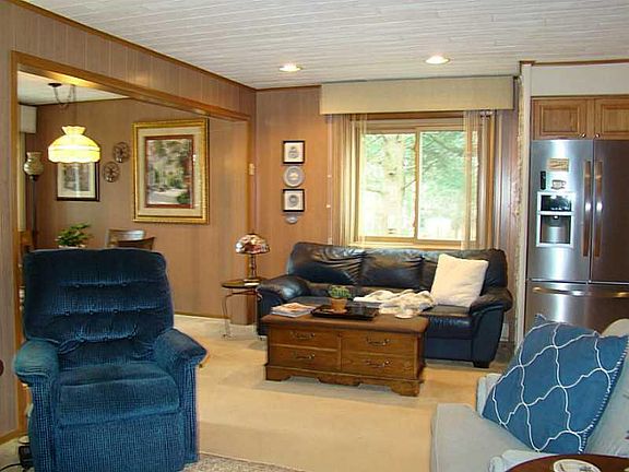 A lakefront home in pristine condition on a beautiful lot; many updates: new kitchen with stainless appliances, convection oven & microwave, new baths with dbl. sinks; wonderful great room with vaulted ceiling, fireplace opens to tiered lakefront decking with hot tub. Master bedroom on main floor with private full bath. Central air, surround sound, water fall, flagstone patio, 2 stall garage, cantilevered docks-some of many amenities! Furnishings convey, lawn tractor & mower, snow plow & cart, also convey. Jet ski negotiable.