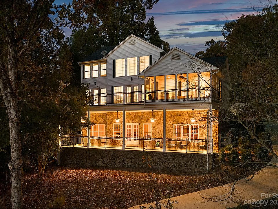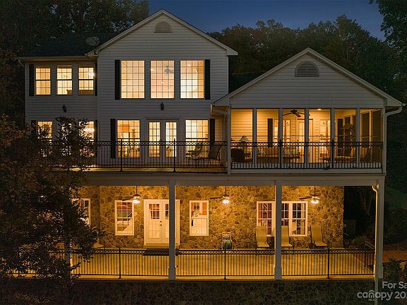 Relaxed Waterfront Luxury w/deep water & Sunset View! Featuring a 2 story foyer & great room, this marvelous home has lots of glass, decks, covered porches & screened in porches to help you unwind! Open concept main living with hardwoods, kitchen w/center island & breakfast bar, granite countertops, new appliances, freshly painted interior & new roof on house & boathouse! Primary bedroom on main floor w/beautiful water view, bath & private access to a beautiful screened porch. Upper level features 2 nice guest bedrooms, full bath & computer niche overlooking the great room. Fantastic den in finished basement w/fireplace, wet bar & soaring ceilings w/views of the water! Large bonus room w/water view & large bath. Oversized covered patio w/rock wall & water view! Mature landscaped yard & concrete walkway down to the boathouse w/boat lift & personal watercraft lift! Huge amount of water to enjoy & breathtaking views! W/a 2 car garage the home this home has so many wonderful amenities!