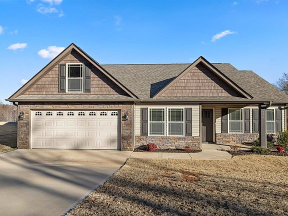Welcome to this beautiful home that offers a bright, open layout featuring a spacious kitchen and a great room complete with a cozy gas fireplace and a stunning 10-foot tray ceiling. The split bedroom floor plan includes 3 bedrooms and 2 bathrooms, with the primary suite offering a walk-in closet and elegant tray ceiling. Stylish details include granite countertops, crown molding with rope lighting, and more. Step outside to a large covered patio that overlooks the expansive backyard, which backs to a serene, tree-lined green space. Enjoy convenient access to Lake Blalock, I-85, and I-26.