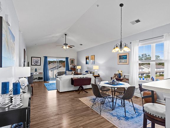 Welcome to this inviting 3-bedroom, 2-bathroom condo in the desirable lakeside community of Kiskadee Parke at Wild Wing. This end-unit residence offers a bright, open-concept layout with vaulted ceilings that enhance the spacious feel throughout the living and dining areas, and is being sold partially furnished. The kitchen is designed for both everyday living and entertaining, featuring abundant cabinet space, ample countertops, and a comfortable breakfast bar that opens nicely into the main living space. The split-bedroom floor plan ensures privacy for both owners and guests. A guest bedroom is thoughtfully positioned off the foyer, while the master suite and additional bedroom are located separately, creating an ideal layout for families, visitors, or a home office setup. The primary suite features a tray ceiling, a generous walk-in closet, and peaceful views of the community lake and fountain. A screened-in rear porch extends your living space outdoors, offering a relaxing place to unwind while overlooking the water. It’s the perfect spot for morning coffee or quiet evenings taking in the scenery. The community provides exceptional amenities, including a clubhouse, swimming pool, tennis and basketball facilities, and easy access to nearby golf courses. Located just minutes from both Conway and Myrtle Beach, this property offers convenient access to Highway 501, shopping, dining, Coastal Carolina University, and everything the Grand Strand has to offer. Whether you're seeking a full-time home, a coastal retreat, or an attractive investment opportunity, this condo delivers comfort, low-maintenance living, and a setting that truly captures the beauty of lakeside life.