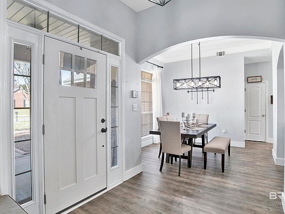 Wonderful brick family home with brand new Gold Fortified roof! Well maintained, safe, walkable community just minutes from the Fairhope pier, bay, and downtown! Home is in the Fairhope East school district close to shopping and more! Wonderful split, open floorplan with soaring, smooth, celings and super flooring thoughout. The primary bath has beautiful granite with double vanity, walk in closets, seperate shower, large garden tub great for soaking, and seperate water closet. There is a Smart Nest thermostat, Ring doorbell, and ADT security system. The fenced back yard offers a super tin roofed, covered back patio, with patio lights that make for a fun place to entertain and hang out with loads of privacy with the permenantly wooded space behind. Call your favorite agent to make an appointment to see this lovley home!