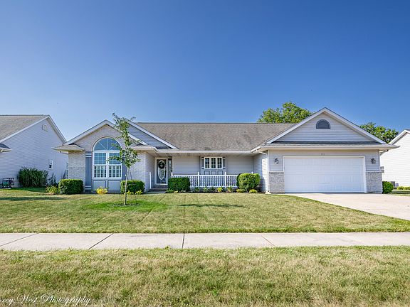 Spacious, 3 bedroom, 2 bath ranch home with a partially finished basement, white picket fenced in yard with two tiered deck, firepit and shed, front porch and 2 car garage. The vaulted ceilings and windows make the space bright, airy and great for family gatherings and entertaining. Crown moulding and wainscoting. Updated baths, flooring, some lighting, interior and trim recently painted, refrigerator and disposal are the recent updates in this home. Family Room with fireplace opens to a Dining area and kitchen with a walk in pantry, newer appliances, and breakfast bar. Master Suite with updated walk in shower and flooring has a slider leading to the recently refinished deck and back yard with shed. Dining Area with sliders to the deck. Desirable layout with bedrooms on the one side of the home. Partially finished basement with laundry, egress window, bedroom, bonus room and additional storage and area to finish to your liking, plumbed for additional bath. The obvious pride of ownership, love and memories make this home a must see and is ready for a new family! Located near the tollway!