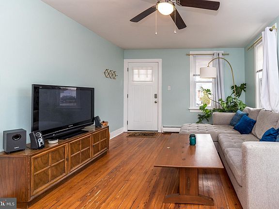 This sweet home is ready for a new owner! Charming in and out, you will love the covered porch entry with the perfect spot for chairs or a bench. Step inside and see all of the new improvements over the years throughout the home. Gleaming wood floors on the first and second floor, sunlit stairs to the second floor bedrooms, entry area living room, a large dining room waiting for your next meal and an updated kitchen with stainless appliances (except refrigerator), white cabinetry and new windows to take in the view. The updated full bath is on this floor along with a first floor bedroom, currently used as a home office. The kitchen features electric cooking, built-in microwave, dishwasher and refrigerator. Plenty of cabinet space in the kitchen where you will also find upgraded counters with an undermount sink and upgraded faucet and access to the huge backyard and unfinished basement. The stairs lead to the second floor with a large hallway and access to two additional bedrooms, both with great closet space. The primary bedroom is currently on this floor and the additional bedroom has a large walk in closet with plenty of room and gleaming wood floors. Head to the fenced backyard and realize that the outdoor space is just what you need! Room to run, garden, activities and more - this yard can be your outdoor oasis! There are already two raised garden beds and two sheds for extra outdoor items. A new driveway was added to allow for secure off street parking. The water heater was replaced in 2022 and the roof was replaced three years ago. Brand new windows were replaced throughout the home in 2022 and will improve your energy efficiency and come with a guarantee! A full basement for storage and laundry round out the features of this adorable and affordable home! Come see it quickly and make it your own!