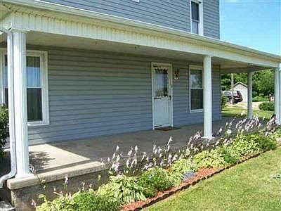 Mini farm with tons of charm! The 2056 sq ft 4 bdrm home on 8+ acres is located just north of I-70 yet in the country. The property offers spectacular viewsof the beautiful surrounding land. The 8 acres is made up of appx. 1.5 acres of home site with several owner planted trees. The remaining 6.75 acres isbeing farmed at $1050 a year by a neighbor. The home is in very good condition w/many updates. The kitchen has been renovated& includes vaulted ceilingw/tongue and groove wood ceiling, new light fixtures, Corian countertops, new sink& appliances. The well pump& system is new, newer reverse osmosiswater system, replacement windows, new upstairs bath, new gas water heater, some new electric, Carrier HVAC& poured foundation. The 4th bdrm isdownstairs but could be a formal dnrm, 8x50 wrap around front porch. Hwd flrs, stone accent ext wall, lots of storage& 2 out buildings .