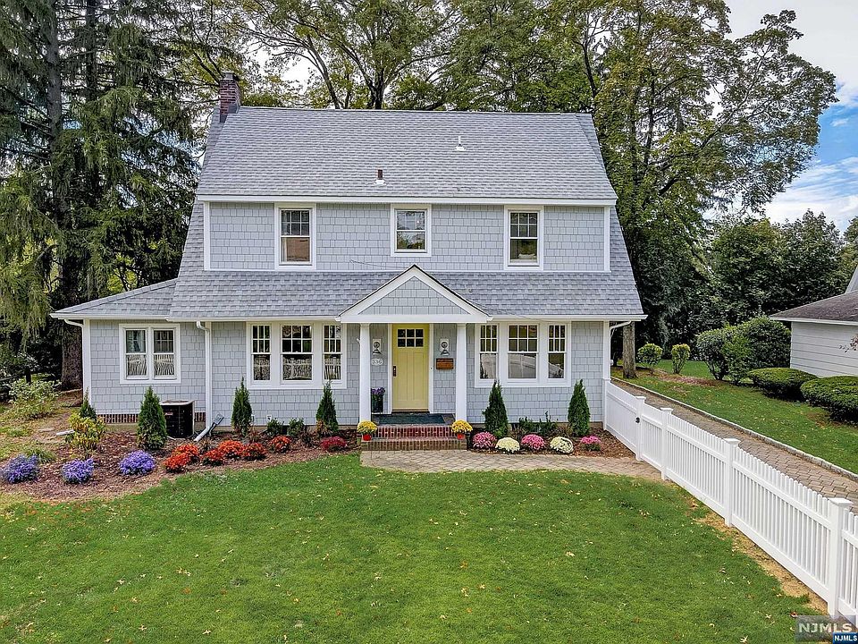 Stunning East Ridgewood colonial that has recently undergone an extensive cosmetic transformation, with upgrades inside & out. All the following are new: hardy siding, roof, gutters, hardwood floors, kitchen cabinets/counters/appliances, interior paint, vanities, light fixtures, basement sheetrock and vinyl floors, front landscaping, and fence. Exploring the open 1st level, you'll find high ceilings, formal dining room, light & bright kitchen, a flexible living space/den, a living room with fireplace, brand-new powder room, and home office/sunroom. Enjoy indoor-outdoor living with access to the rear yard from the back of the home to a lovely patio for outdoor entertaining. Upstairs has 5 bedrooms, including the primary en-suite & a hallway full bath. Completing the home is a 2-car garage & finished basement with plenty of space to play & relax, also with laundry, storage & a half bath. Plus a convenient location right by RHS & downtown Ridgewood!