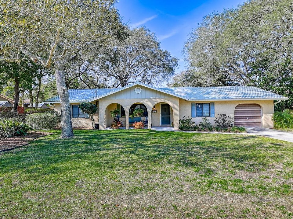 Nestled amongst majestic oak trees on a large .28 acre lot, this three bedroom, two bathroom home is located in the heart of town in the neighborhood of St. Augustine South. Serene landscaping welcomes you to a private covered front porch, an ideal spot to relax and enjoy the outdoors. With wood laminate and tile floors throughout the interior, the split-floor plan is bright and inviting. Along with a fully equipped kitchen and separate dining area, the home includes a large interior utility room and pantry with side door to the exterior. From the kitchen/dining area, sliding glass doors lead out to a screened back porch and adjacent outdoor brick patio. Enjoy the tranquil fully fenced backyard from the pavered firepit area while an oak tree canopy greets you from above. Venture down the street to the nearby community boat ramp, boardwalk and park where endless Intracoastal Waterway and marsh front views can be found. For anyone looking for a tranquil oasis while being within minutes to shopping, restaurants, historic downtown, and the beaches, this home is a must see.