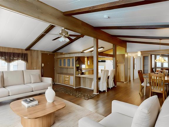 Senior 55+ Space Rent $1650.00 per month~~2 Full Bedrooms~~1320 Sq ft~~1983 Goldenwest~~Newer Vinyl Dual Paned Windows~~Plantation Shutters~~2 car Parking~~Plenty of Closets~~Eat in Kitchen~~1 Storage Shed~~Security Screen Door~~Move in Ready~~Really Nice Home~~ Kitchen Open to Living Room ~~ XLarge Laundry Room w/Desk ~~ Side Porch w/Raised Planters ~~ Park Offers Dog enclosure by clubhouse, pool, spa, Billards, Clubhouse