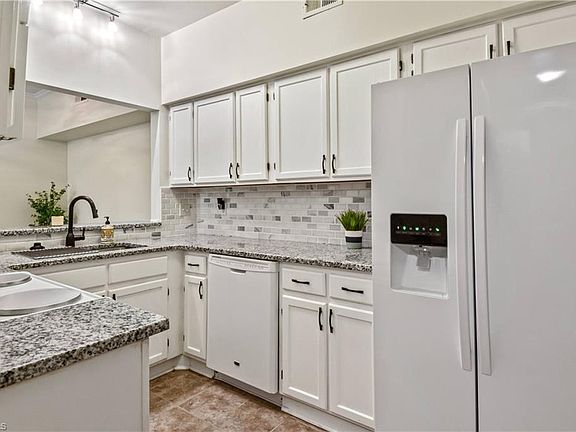 Welcome to The Meadows! This LOWER level condo is your secluded little hideaway... Enjoy private patio to walk right outside for those with pets and view of woods to really make you feel snuggled in ... Kitchen offering granite countertops, tile backsplash, updated fixtures...Refrigerator, Washer & Dryer remain too...View from Kit to Dining Nook & Living Room, Living room offers patio doors & wood burning FP... Updated light fixtures throughout...Home offers 3 bedrooms with 2 "primary" bedrooms... Larger Primary bedroom offers tons of space with room for desk or sitting area, Walk in closet and secondary closet too, Adjoining Bathroom w/updated Double Sink Vanity, Garden Tub/Shower & linen closet... Second Primary bedroom offers double mirrored closets w Updated Bathroom Cabinet & tub/shower combo... 3rd bedroom could also be a great office & has door leading to the patio... Patio storage closet...Neighborhood offers lots of parking, Community Pool, Water/Sewer included in HOA dues