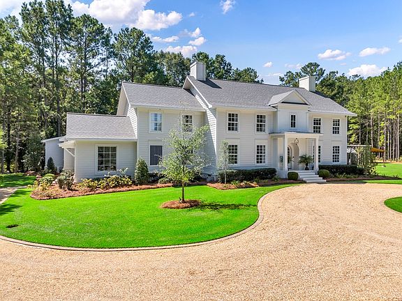 Welcome to your private retreat in the heart of Terrell County — a truly remarkable 5-bedroom, 4.5-bath estate set on 90 picturesque acres just minutes from Dawson, GA. Offering 5,800 square feet of beautifully updated living space, this property features luxury and the serenity of country living. Inside, you're welcomed by a large, light-filled foyer that leads into a formal living room with a cozy gas fireplace. The open dining area flows into a gourmet kitchen featuring marble countertops, top-of-the-line stainless steel appliances including a full-size refrigerator and separate freezer, gas JennAir stove, double ovens, and a large butler's pantry with an additional sink, ice maker, and generous cabinetry. Just off the kitchen, a comfortable sitting area opens through double doors to the backyard and pool area. A nearby hallway leads to a spacious laundry room with a chute from upstairs, additional sitting area, a stylish half-bath, and a sunken family room with breakfast nook overlooking the front yard. The main level also features a luxurious primary suite addition (2020), showcasing vaulted ceilings, massive his-and-hers walk-in closets, dual marble vanities with premium fixtures, a soaking tub, and a walk-in marble shower with dual showerheads. Upstairs includes the original primary suite with its own large walk-in closets and marble en-suite bath featuring dual vanities, tub, and dual-head shower. Three additional bedrooms are located upstairs as well — one with a private bath, and two sharing a well-appointed Jack-and-Jill bathroom. Step outside to enjoy manicured landscaping, a sparkling in-ground pool with a tanning shelf, and a covered pavilion ideal for entertaining or relaxing in the shade. A 40x30 wired workshop with dual garage doors provides excellent space for hobbies or storage, along with an additional covered area for parking equipment. Just inside the main entrance, you'll find a scenic 5-acre pond stocked with bass and bream — a favorite spot for fishing and frequented by geese and other native wildlife. The remainder of the 90 acres includes 34 acres of CRP pines, uplands, and a beautiful hardwood drain that serves as a natural haven for deer, turkey, and other wildlife. Several trophy-class bucks have been spotted on the property, making it a dream for hunters or nature enthusiasts. This exceptional property delivers on all fronts — luxury, land, and lifestyle!