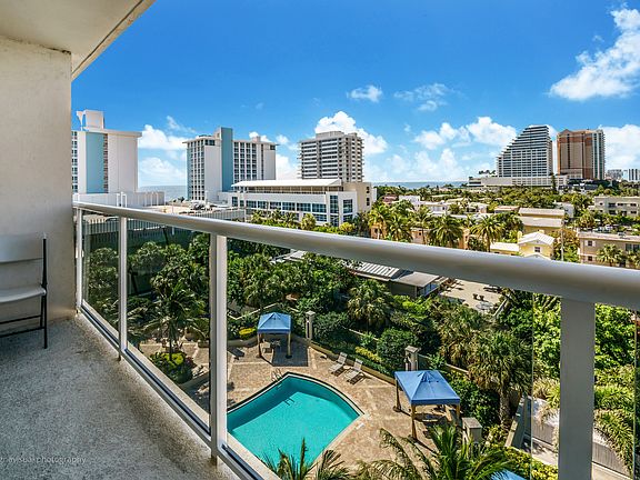 Large turnkey furnished 2/2 in the heart of Ft. Lauderdale Beach - 1 block to the beach, close to shops, restaurants, N. Beach Village, & Birch State Park. Ocean, Intracoastal, & Downtown Skyline views! RENOVATED - Pergo floors, gorgeous baths, open kitchen, newer AC 2013, & recessed lighting. RENOVATED BLDG- all impact windows/doors, new glass balcony railings, state of the art gym overlooking resort like tropical pool area w/ Cabanas and BBQ area. Clubroom, bike storage area, car wash area & more.