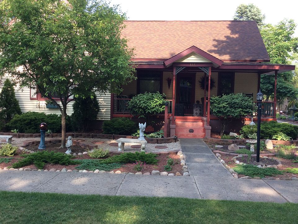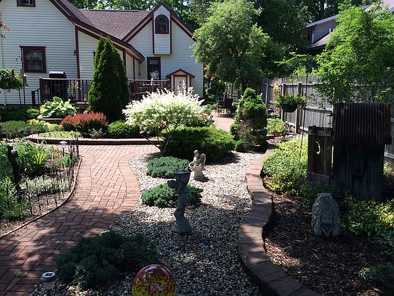 ELegant Victorian home close to schools and shopping. Has lots of updates it the last few years (siding, shingles, plumbing, electrical, more). French doors and wood floors and original hardware on the doors. Country kitchen w/fireplace has a large island. The stairway to the second floor is circular and reminiscent of "Gone With The Wind" leading to a study (or bonus room) two bedrooms and 1/2 bath. Covered porch, privacy fence, paved driveway and wrap around deck overlooking an exquisite English garden with water feature. You won't believe your eyes!