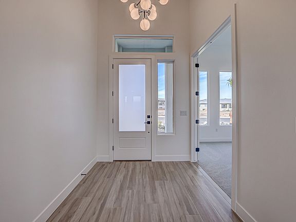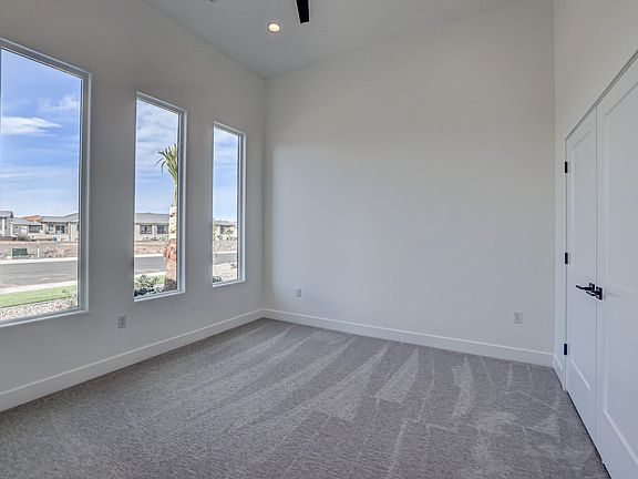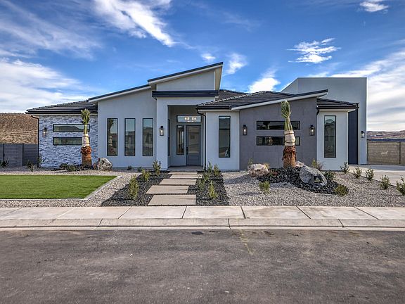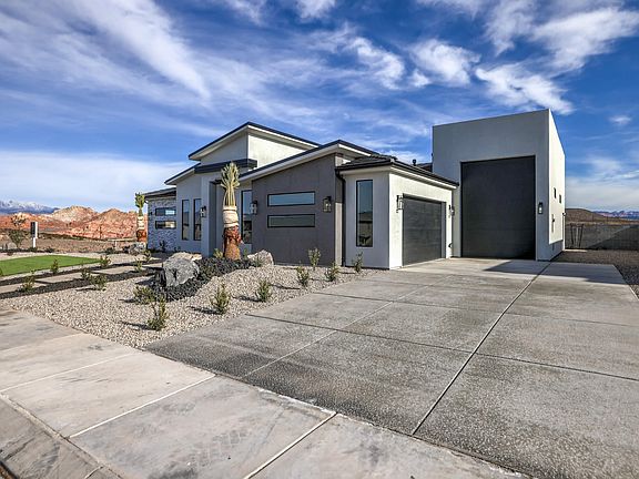 Modern new build located in a quiet, new neighborhood with beautiful views throughout it. Conveniently located close to the new IHC InstaCare, Emergency Room, restaurants, shopping and Sky Mountain Golf Course. Enjoy this location without an HOA, and plenty of room for your toys in the RV garage! You'll love the low maintenance upgraded landscaping with artificial grass and palm trees! Luxury design features and quality building materials include: paint/stain grade wood cabinets, porcelain wood plank tile flooring, tile in the primary shower with plumbing upgrades, touch mirrors and tile fireplace that extends to the ceiling. It's a must-see!