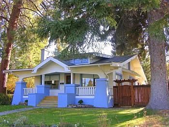 Listing agent: Jim Birtola, Call 800-816-9449 for information. 1920's Westside Bend charm at its best! Step back in time, upgraded 4 bedroom/3 bath, 2600+sf bungalow with hardwood & tile floors, coffered beamed ceilings, 2 gas Fire Place (2 are in suites), big fenced backyard with extensive decking & hot tub, traditional period covered front porch, alley access garage in back, & gorgeous mature pines & fir trees. Remodel includes: all new HVAC, electrical, plumbing & insulation. All new reclaimed hardwood floors & clawtubs & sinks. Just a short walk to Drake Park & Mirror Pond too!