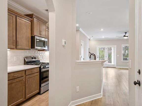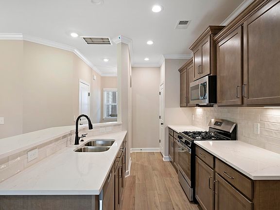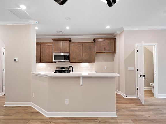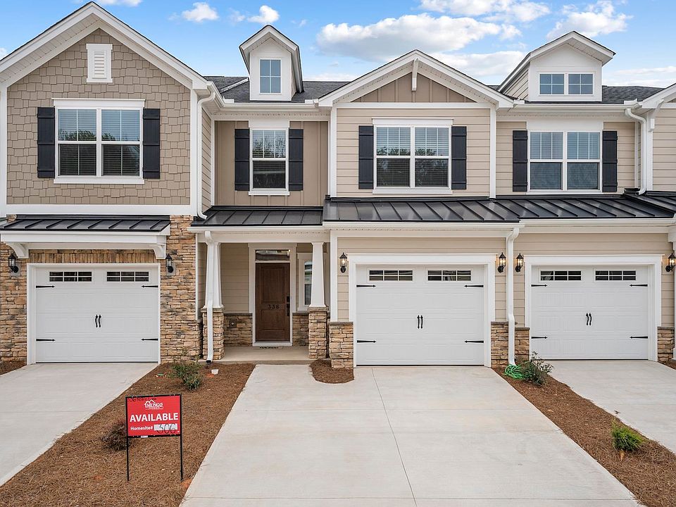 Luxury townhomes in incredible location, with shopping and dining right at your doorstop, just 5 minutes from Woodruff Rd. and 10 minutes to downtown! This beautiful home offers luxury, convenience, and functionality. Step inside your new home and you will be wowed with the hardwood stairs and luxury plank flooring on the whole first floor. Your kitchen boasts upgraded, locally made cabinetry, with gorgeous quartz countertops, tile backsplash, a pantry, and gas oven! The kitchen overlooks the eating area and inviting family room, complete with a gas fireplace and thoughtful finishes such as ceiling fans, crown molding and upgraded light fixtures. The gorgeous garden doors beckon you outside, to your own covered back patio complete with storage shed. The fence panels already installed and green space behind offer even more privacy. Continue up the gorgeous boxed oak stairs that turn and have two windows to let in the natural light. Your oversized master suite upstairs is grand, with crown molding and private access to your own balcony. Imagine peaceful mornings drinking coffee overlooking the neighborhood. The master suite is spa-like, with tile floors and an oversized tile shower, and a generous walk-in closet. Down the hall 2 secondary bedrooms with another full bath complete this home. Fall in love with the community as well, which has it all offering homes currently zoned for the only SC school in over 20 years to win the McConnell award (highest achievement award an academic facility can win), and some of the best amenities around. Enjoy the community pool, creek that feeds the 2 fishing ponds, and walking trails that connect the different amenities. Come live the life you want. Lawn care and exterior care is covered by the HOA. Opportunities like this don't come around often, come visit the model home today.