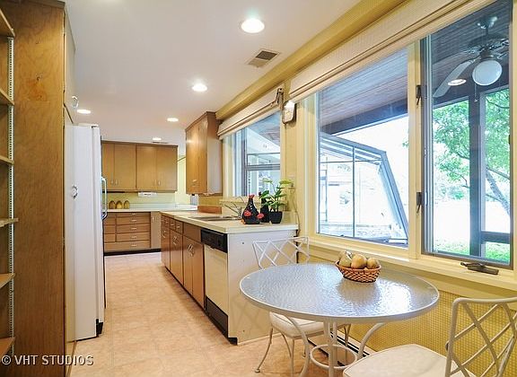 Truly unique,desiged by Frank Lloyd Wright protege,Van Bergen, this gorgeous property overlooks the forest preserve,has spacious western views and access to the riding trails. Restore, expand,or build new. So many possibilities. Also, there is a 3 story working observatory,greenhouse,heated garage workshop, and a three stall barn with two pastures on these 5 plus acres.
