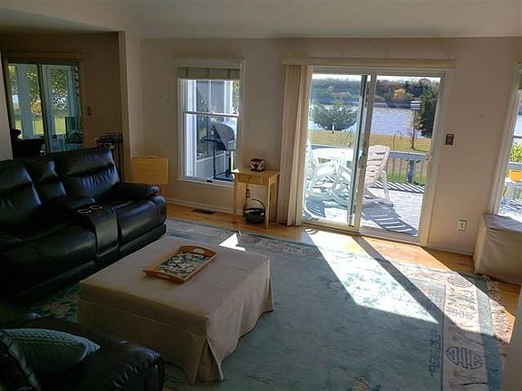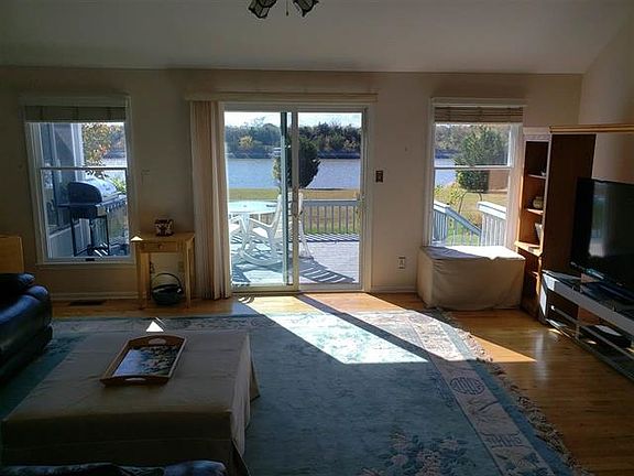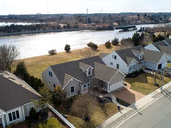 Canal front living with the 5 bedroom 3 bath Brentwood 2 model in Waterside development. Fronts CORP land with lease to access and use. Walk in and look right at the water with open foyer, large living room with vaulted ceilings and gas fireplace, dining area, 3 season room, deck, open kitchen, master suite with walk in closet and bath, 2 additional bedrooms and hall bath, laundry and 2 car garage. Second floor has 2 large bedrooms, hall bath and sitting nook. Need light updating. Heating, air, and systems are original but working order. Priced for updating. Rare chance to live on the water!