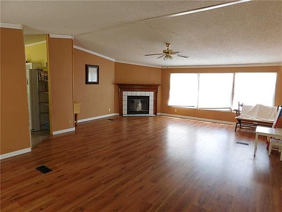This secluded 5 acres with Doublewide has a spacious living room with wood burning fireplace,and a large bright kitchen with center island. The master bedroom is separate from the secondary bedrooms and has a large walk in closet. The master bath is spacious with double vanity, garden tub and separate shower. Secluded from the road and private, this property is partially fenced with plenty of trees.