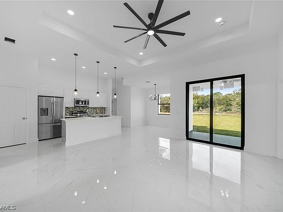 Gorgeous 3 Bedroom plus den/office in a well-established neighborhood in Lehigh Acres. Great location and close proximity to all major shopping, schools and attractions. Top quality and design home with plenty of upgrades. Hight interior ceiling with 9'4" in bedrooms, 11'0" in living room area and 12'0" tray ceiling. Porcelain tile throughout the house and exterior tile Anti slip in porch and lanai. The kitchen countertop is quartz sparkling white. Modern cabinets shaker style with 36" high on the top and soft close doors. Wood closet interior design in master bedroom closets. Beautiful top brand stainless-steel appliances. Washer & Dryer included. The house has HURRICANE IMPACT WINDOWS AND SLIDING DOOR. Large 72-inch ceiling fan in living room area and LED lighting throughout. Ceiling fans in all rooms including the lanai.