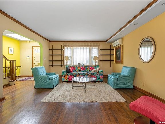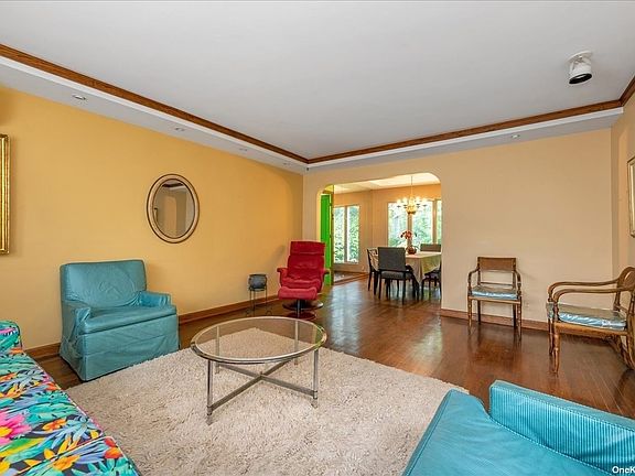 Charming Expanded Cape on Quiet Tree Lined St, Featuring 4 Large Bedrooms, 2 Full Baths, Fireplace, Hardwood Floors Thru out, Skylights, Lg Part Fin Basement. Oversized Midblock Landscaped Property. Great Location, Close to Worship, LIRR, Bus, Shops. Sold AS IS Condition- Lots of Potential!