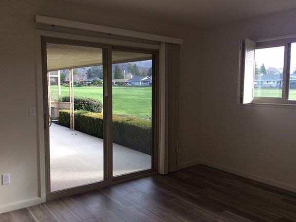 Find this gem on the golf course! Enjoy outstanding views of the hills beyond the green from almost every room. Picture perfect! This two bedroom, two bath home has been recently remodeled with newer appliances, newer counters, newer lighting, newer window coverings and newer flooring throughout. There is an abundance of built in cabinets that provide lots of interior storage. This home comes with air conditioning, and the gas fireplace adds warmth & ambiance on winter nights anytime. The covered patio allows for year-round outdoor enjoyment. Washer/ Dryer hookups available in the attached two car garage. The garage is remote operated for your convenience. Water and landscaping included. *Age Restrictions Apply. This is an Adult Community and you must be 55 years or older.* 1 Year Lease Required No Pets. No Smoking. Tenants pays Oakmont Amenity access fees. Tenant pays gas, electricity, and garbage.