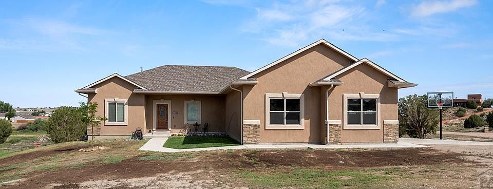 Open concept ranch style home located in the Pueblo west acreage area with five bedrooms, three baths, and an oversized three car garage. Large master suite with a 5 piece bath, walk in shower, jetted tub, and walk in closet. Granite countertops/Fireplace/Custom textured drywall/Custom raised panel cabinets/Tray ceilings/ Finished walkout basement with two family rooms. Privacy fence/ Covered treks deck. Corner lot on 1.5 acres. No one can build behind this property that backs up to Turkey creek open space. Beautifully landscaped front and back with trees, flowers, rocks and walkways, xeriscaping.