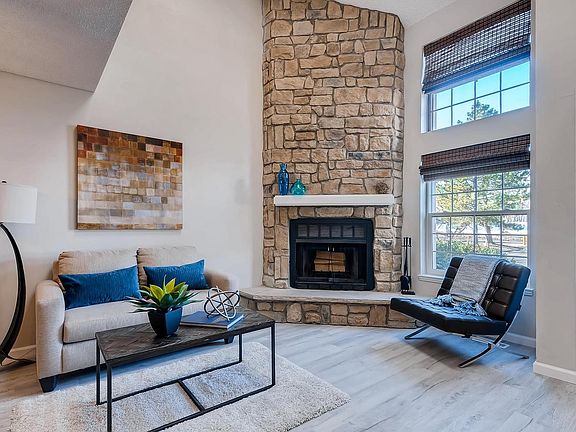 Spacious one bedroom townhouse with vaulted ceilings, skylight, and new Paint,Flooring, Kitchen cabinets, countertops, bathroom vanity, floor-to-ceiling fireplace, loft bedroom and bathroom, and fenced backyard that backs to open space. There is a designated parking spot, with a lot of guest parking. Great location, close to light rail, Buckley AFB, CU Medical, highway access, shopping, entertainment,