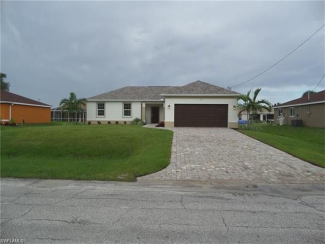 Take a look at this unique 4 bedroom home! Most 4 bedroom homes in Cape Coral are much larger, and more expensive for the buyer. This 4 bedroom home was built to be affordable! Specifically for the larger or growing family. This home conforms perfectly with FHA guidelines and lending limits, so it is ideal for the 1st time buyer looking for that affordable property. What are upgrades for many other builders, are standard within this model. It features tile throughout the entire home, granite counter tops in the kitchen and baths, solid wood cabinets, stainless steel appliances and matching brick paver driveway, walkway and patio. Schedule your showings today for this one of a kind 4 bedroom home!