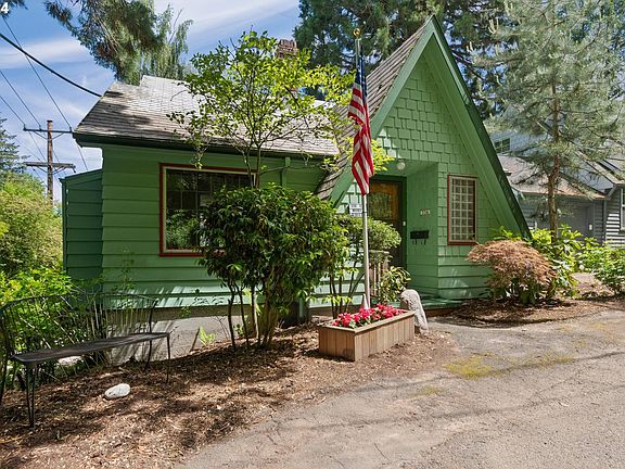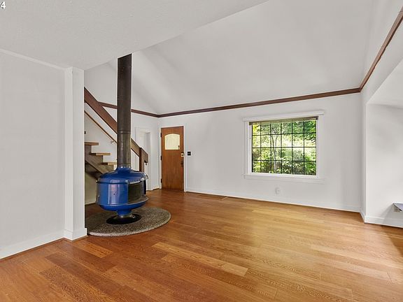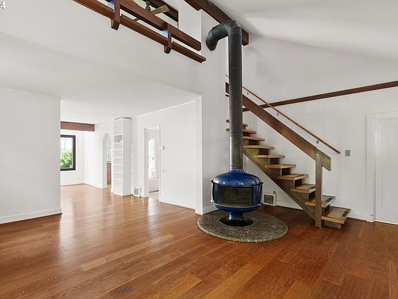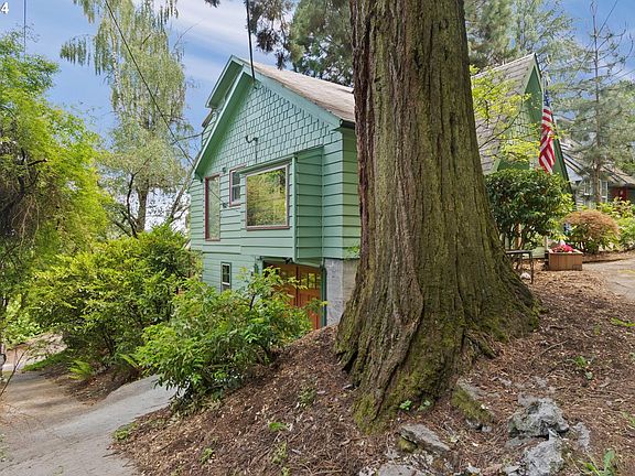 Nestled in the heart of Portland, this charming home offers a perfect blend of charm and practicality. Boasting 4 bedrooms, 2 baths, and 1,666 sq ft of living space, this beauty is a must-see! Take in the breathtaking view of majestic Mt. Hood from the kitchen, dining room, and the private balcony in the loft. Step into the welcoming living room with vaulted ceilings and a contemporary wood stove, creating a cozy ambiance. The versatile loft area serves as a nonconforming bedroom with a walk-in closet and built-in features, complemented by a private balcony area overlooking the stunning landscape. The thoughtfully designed kitchen features quartz counters, wood block countertops, subway tile, built-in elements, and Marmoleum flooring. The main level includes the primary bedroom with an attached bathroom for added convenience. Descend the spiral staircase to discover a relaxing family room space, two additional bedrooms, and another bathroom downstairs. Step into the backyard oasis, complete with a park-like setting, a tranquil pond, and mature trees. An outdoor shed provides ample storage space. This home comes fully equipped with all appliances included in the sale, along with central AC and an attached one-car garage. Positioned near trails, OHSU, city amenities, and freeway access, this gem won't be on the market for long. Schedule your showing today to experience this Portland paradise! [Home Energy Score = 1. HES Report at https://rpt.greenbuildingregistry.com/hes/OR10227460]