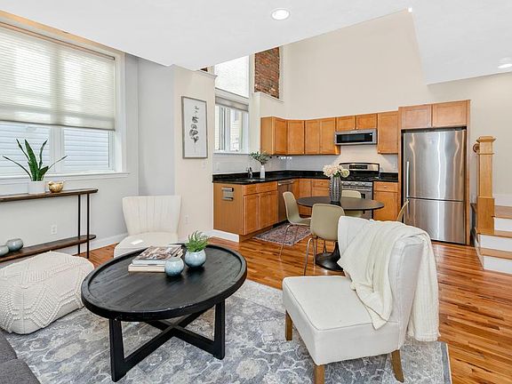 Wow! This spacious 3-4 bedroom, 2 1/2 bathroom home is carved from a converted church. With almost 1700 square feet over three levels, it feels like a chic single-family hidden in the bustling Eagle Hill neighborhood. On the main level are the open concept living room and modern kitchen with a breathtaking, soaring ceiling and half bath. Upstairs is a sophisticated loft-style primary bedroom featuring an ensuite bathroom and walk-in closet. On the lower level are two to three additional bedrooms, a full bathroom, and laundry room. Generous closets throughout, too! Enjoy modern conveniences including central air conditioning and heat controlled by the Nest thermostat. And what an amazing location only blocks to the Blue Line, incredible restaurants, local beaches, parks, and all that East Boston has to offer. Owner pays for water. Renter is responsible for gas (heat & hot water) and electric. First and Last month's rent due at signing. Broker fee of $3200 due with accepted application. No smoking allowed. No pets. No undergrads.