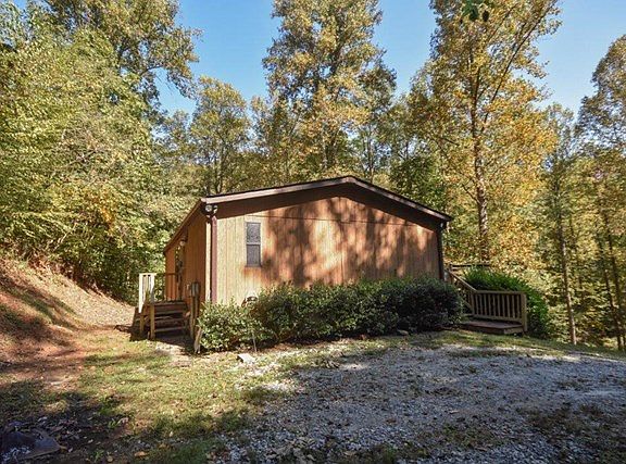 Charming setting and park-like yard at this 2 Bedroom 2 Bath manufactured home on 1+/- acre. Great deck goes the length of home and includes a built in bench for relaxation and entertainment. Perfect spot to relax and enjoy the rushing year round creek below. Private setting while also having a yard, tress on all sides. Many updates - Oven, Washer and HVAC have all had updates in the last year. Roof is only 4 years old. Private well. Inside this home you'll find an open concept floor plan with split bedrooms. Kitchen has added cabinetry and plenty of room for an eat-in set up. High speed internet through Frontier and strong cell service at home with both AT&T and Verizon providers (non others tried). Great 2/2 in a quiet neighborhood and just minutes to 441S.