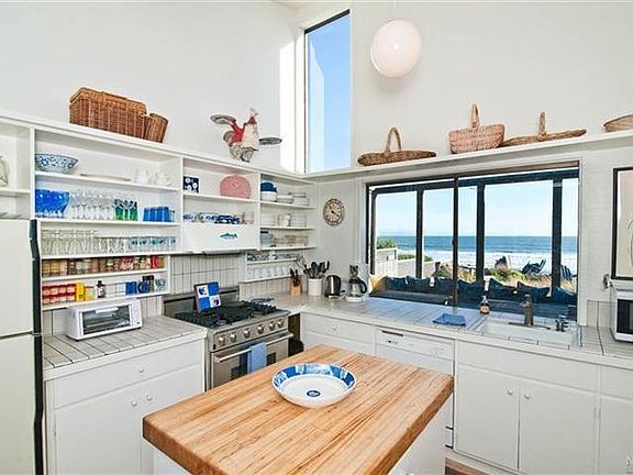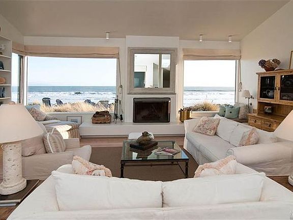 High-dune location with stunning large-window views of the beautiful beach and breakers. Upper (split) level with light-filled great room and the incomparable beach views, vaulted ceiling, great fireplace, built-ins and dining area, adjacent the sunny kitchen, ocean-side master suite and the beach-side lanai. Entry level with central seating/TV area, two bedrooms (one en-suite), hall bath, laundry and the loft that sleeps 6 children. Three bedrooms, three baths, beautiful and private court-yard garden, four-car parking and one of the most beautiful beaches in California.