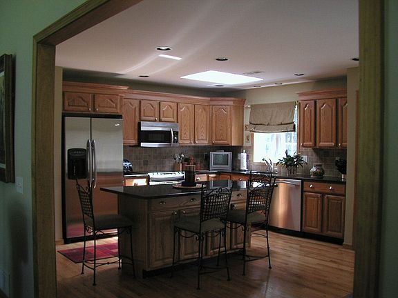 Beautiful contemporary High Ranch featuring 3 bedrooms with possible 4th and 3 full baths. Quality throughout. Features: beautiful open and spacious layout with hardwood floors and solid wood doors. Country kitchen with granite counters and center island. Top of the line Stainless Steel appliances. Marble back splash. Formal living room w/Fireplace and hardwood floors threw-out. Sliding glass doors leading to large deck (with automatic awning). Lower level is all above grade with lots of windows and large spacious rooms. Sliding glass door to large patio and inground pool. Gorgeous private park like property w/views and inground pool. Room for extended family. Great mother/daughter setup Absolutely nothing to do but move in!